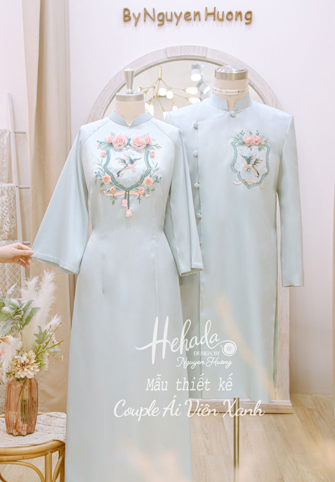 Áo dài cặp đôi Ái Viên Xanh