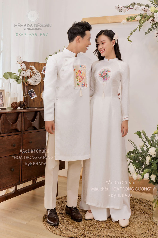 Áo dài cặp đôi Hoa Trong Gương