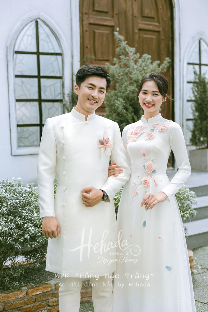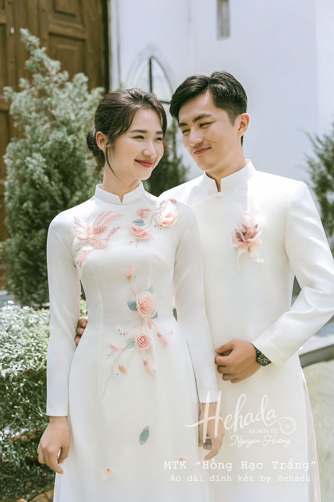 Áo dài cặp đôi Hồng Hạc Trắng