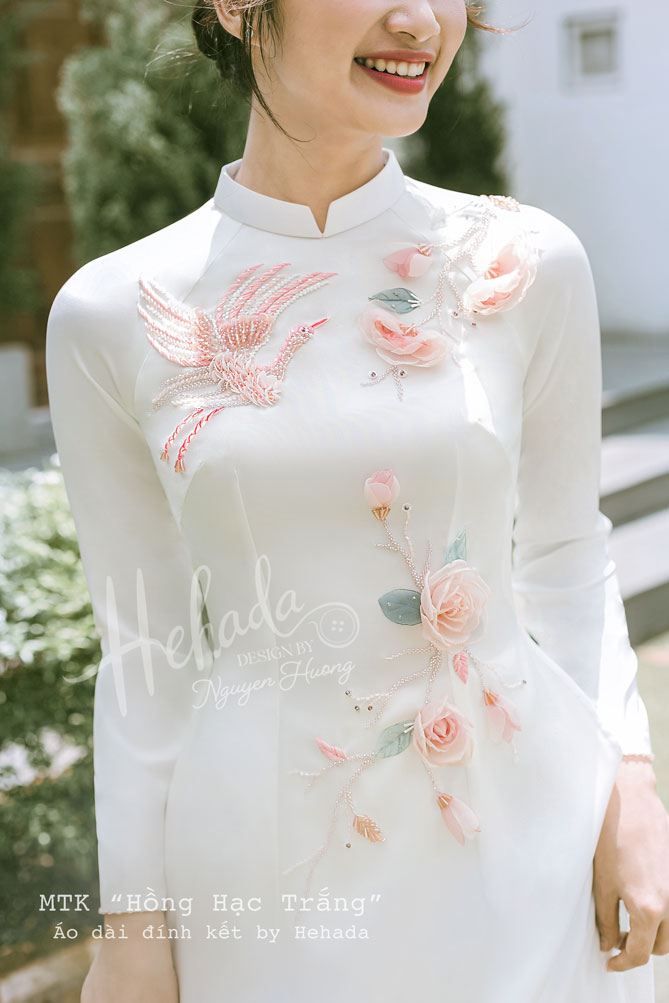 Dưới đây là tà áo dài “Hồng Hạc Trắng” thiết kế Signature của nhà He.