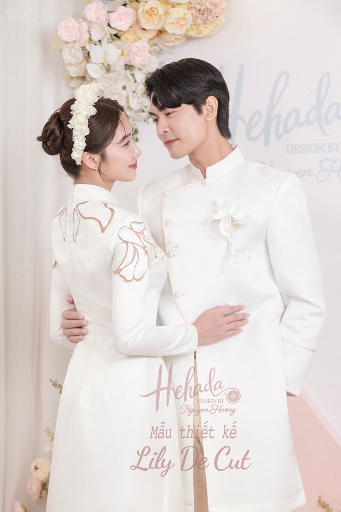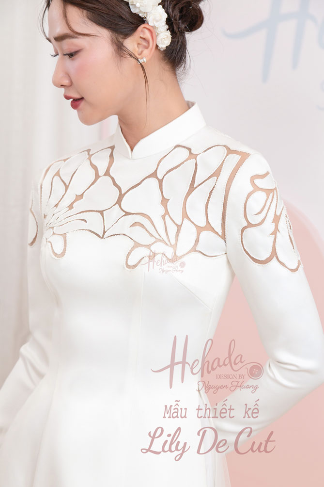 Lấy cảm hứng từ hoa Lily, loài hoa của sự thuần khiết và khởi đầu viên mãn, “Lily De Cut” là thiết kế áo dài cưới dành cho dâu yêu sự thanh lịch, nhẹ nhàng