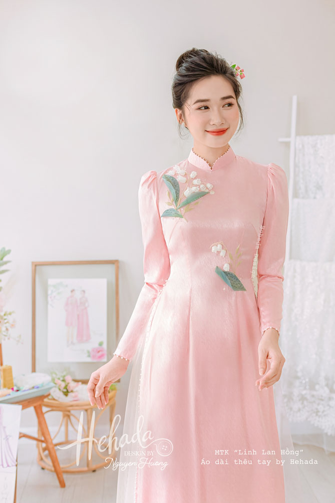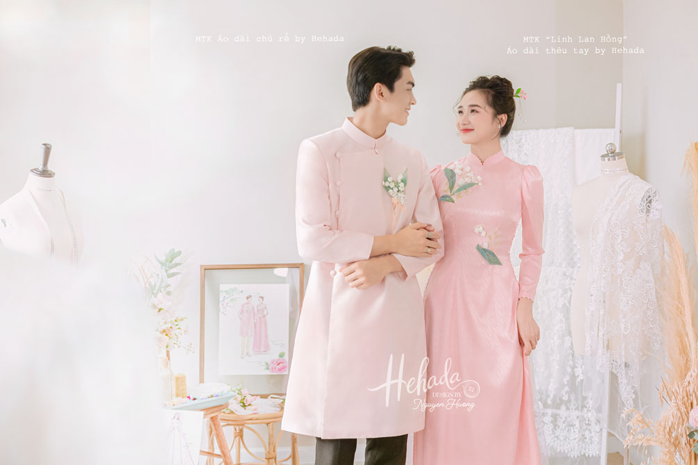 Áo dài cặp đôi Linh Lan Hồng