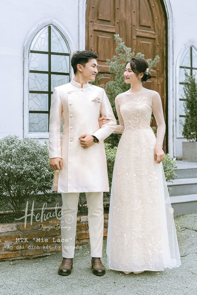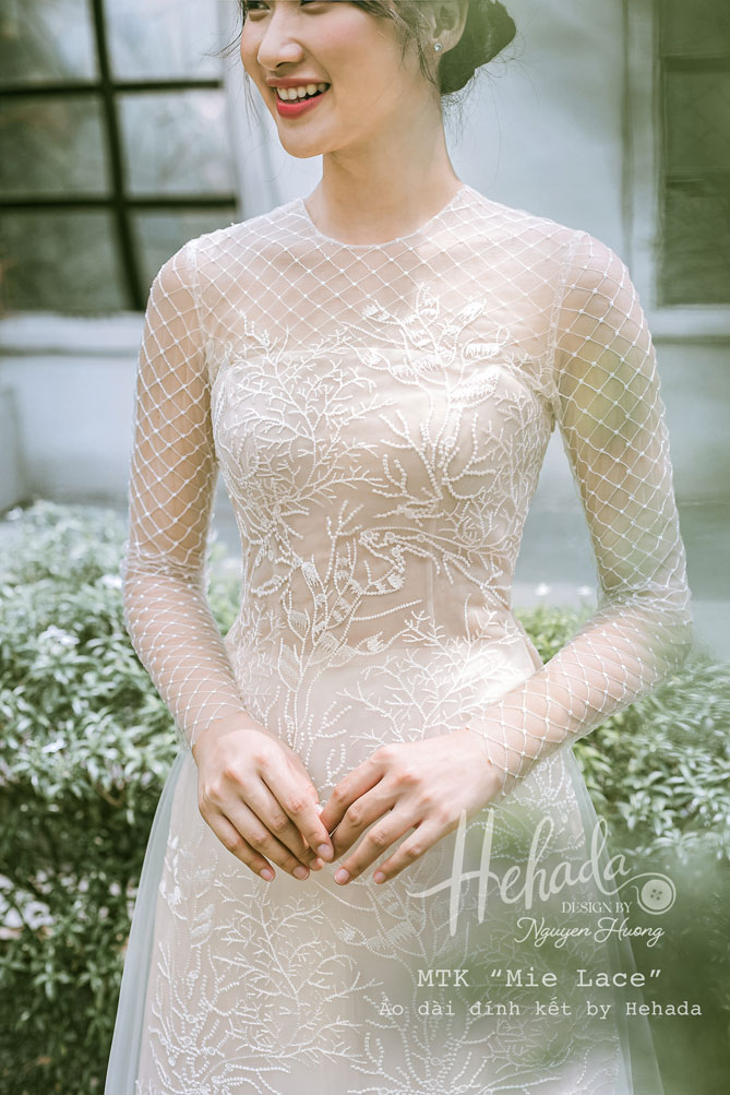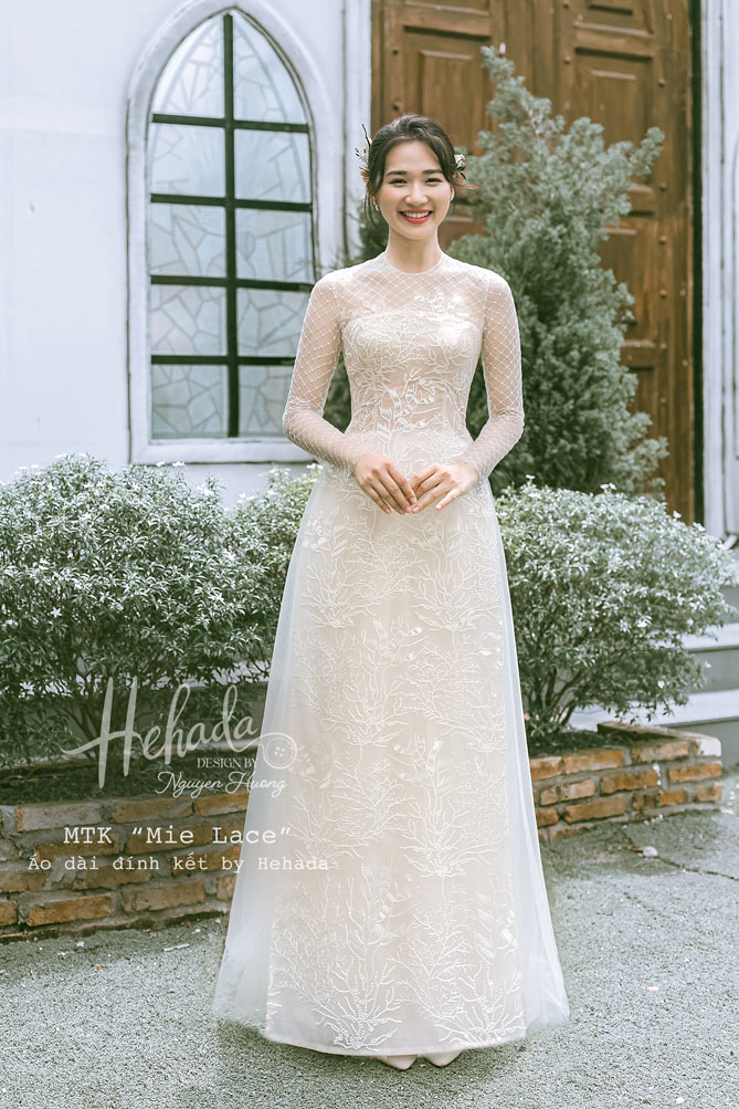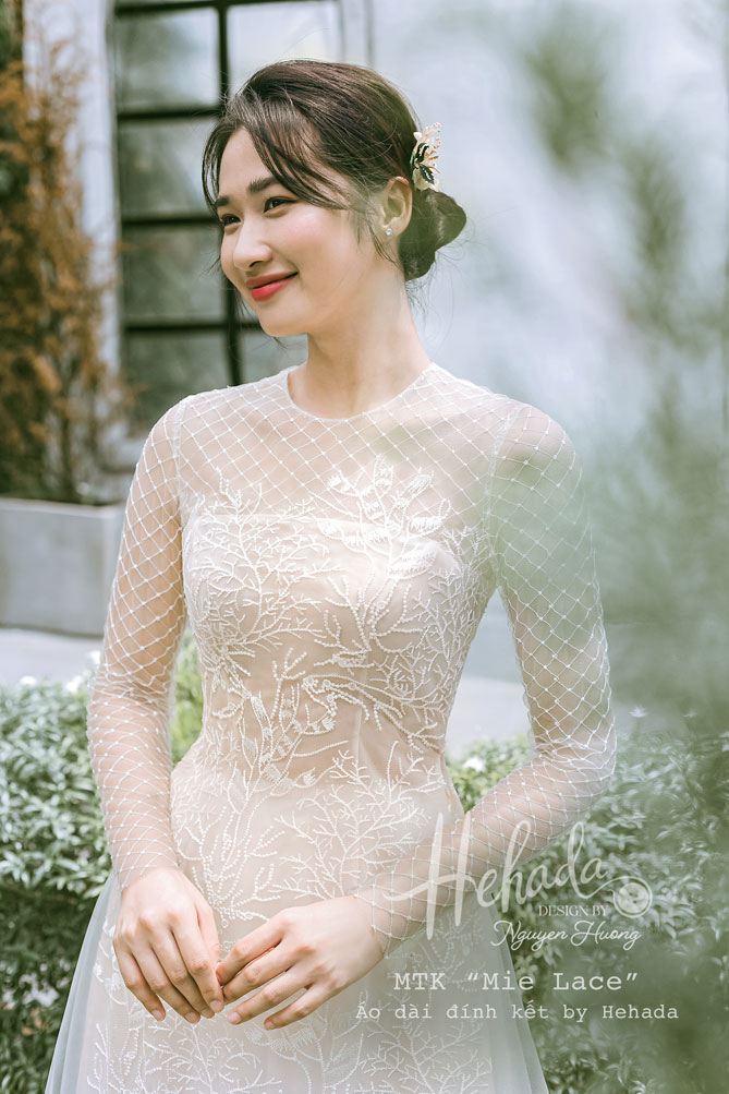 Thiết kế Mie Lace là sự giao thoa giữa truyền thống và hiện đại, với tone màu “Ivory color” trendy và các chi tiết ren được đính kết thủ công hàng giờ liền, làm tà áo dài mang vẻ đẹp và giá trị vượt thời gian.