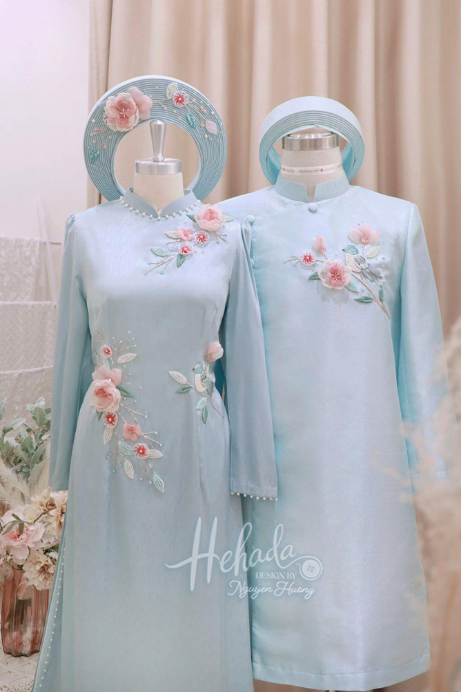 Áo dài cặp đôi Sương Mai Xanh