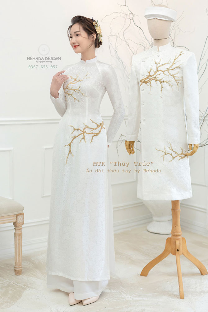Áo dài cặp đôi Thuỷ Trúc Trắng