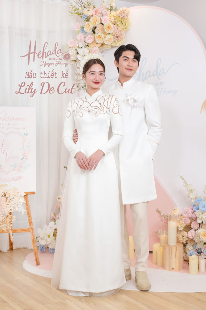 Lấy cảm hứng từ hoa Lily, loài hoa của sự thuần khiết và khởi đầu viên mãn, “Lily De Cut” là thiết kế áo dài cưới dành cho dâu yêu sự thanh lịch, nhẹ nhàng