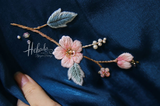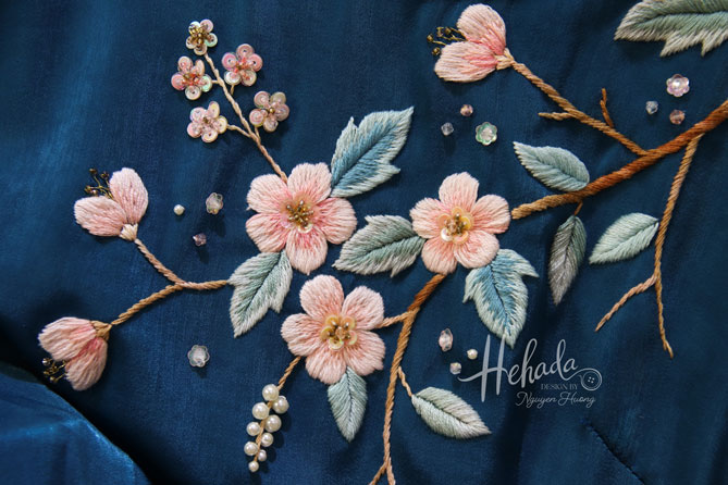 ''Hoạ Tiết Hoa Đào" là lời gửi gắm thân yêu của mẹ dành cho đôi uyên ương, như cành đào mùa xuân mang đến sự ấm áp và khởi đầu viên mãn