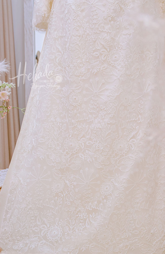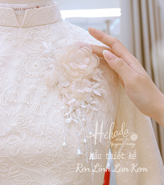 Để nàng có thêm nhiều lựa chọn, nay He ra mắt thiết kế Ren Linh Lan trên nền vải tone kem dịu nhẹ phối cùng cài áo cùng tone cho mình diện Lễ Tết sắp tới nà