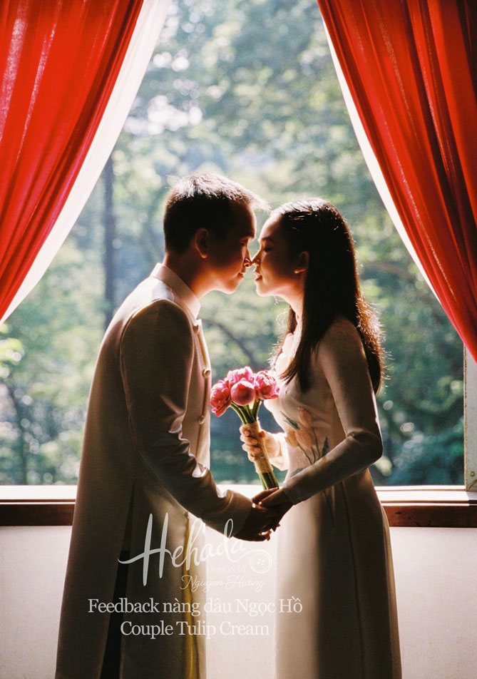 Thật vui khi được ngắm bộ ảnh của dâu rể trong tà áo dài đôi “Tulip Cream” vừa ấm áp vừa lãng mạn cùng với không gian trang trọng đầy ý nghĩa của Dinh Độc Lập.